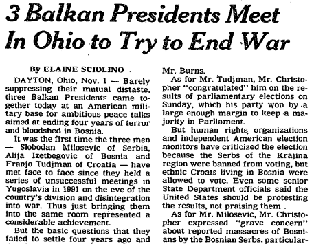 Pingback: Bosnian war ended at Dayton 20 years ago; U.S. ‘hubris bubble’ swelled soon after | The 1995 Blog
